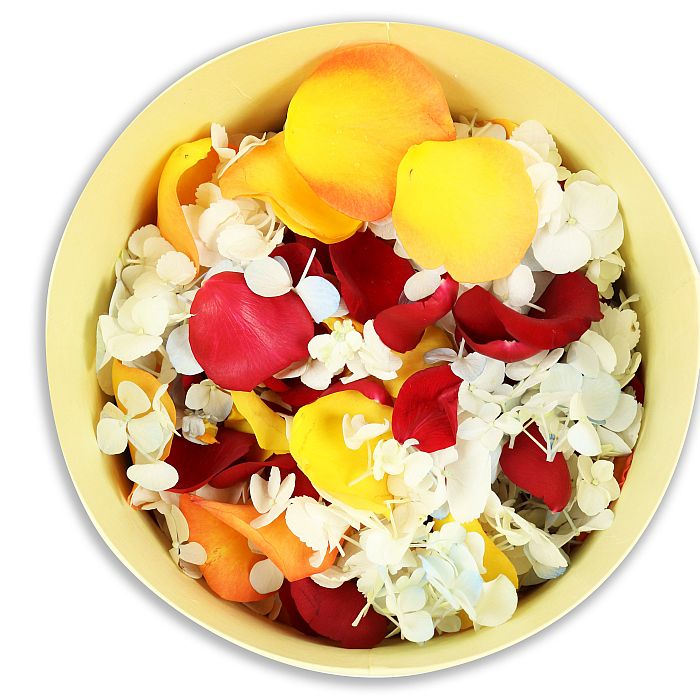 Celebrate life's special moments with our graceful and unique mixed petal bouquet. This exquisite arrangement features a vibrant combination of Hydrangea, Rose, and Chrysanthemum petals, each selected for their vivid colors and elegant design.